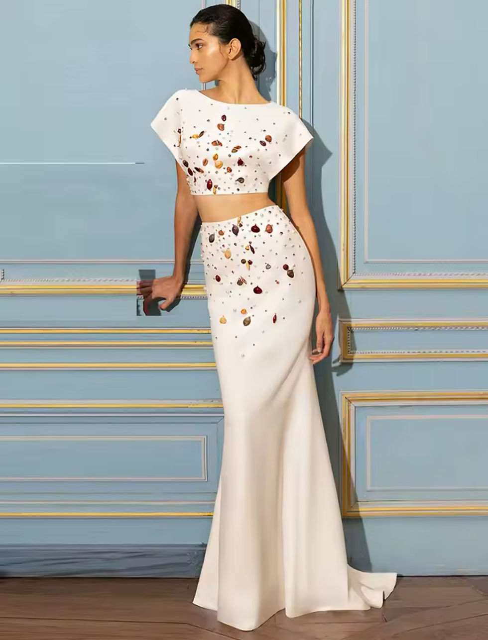 Set Blanco Con Piedras