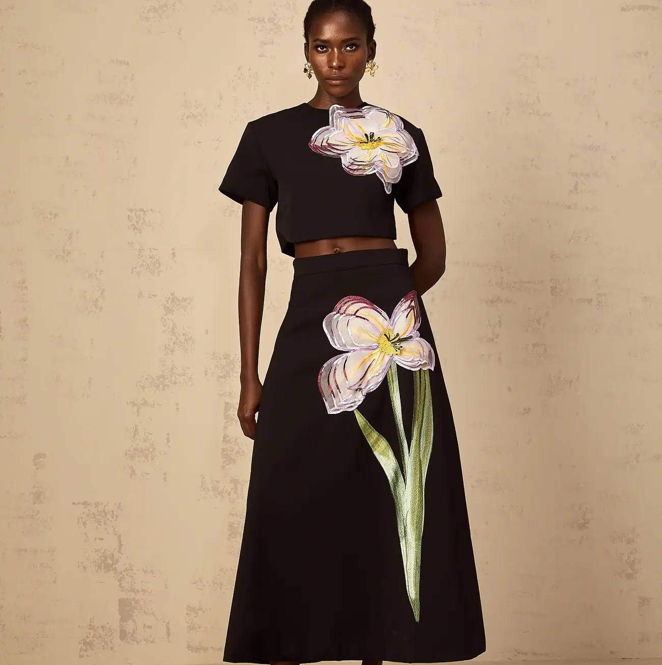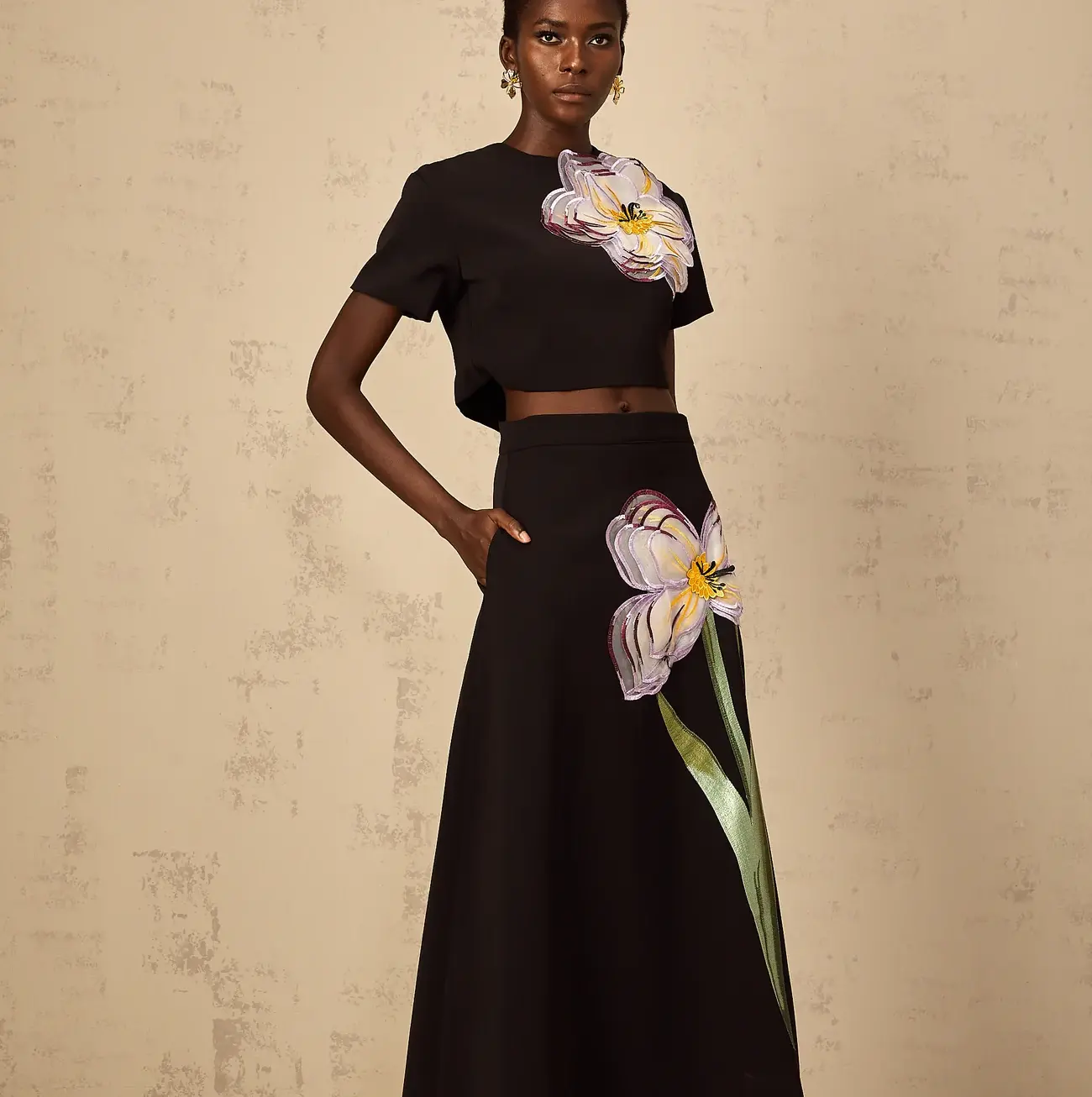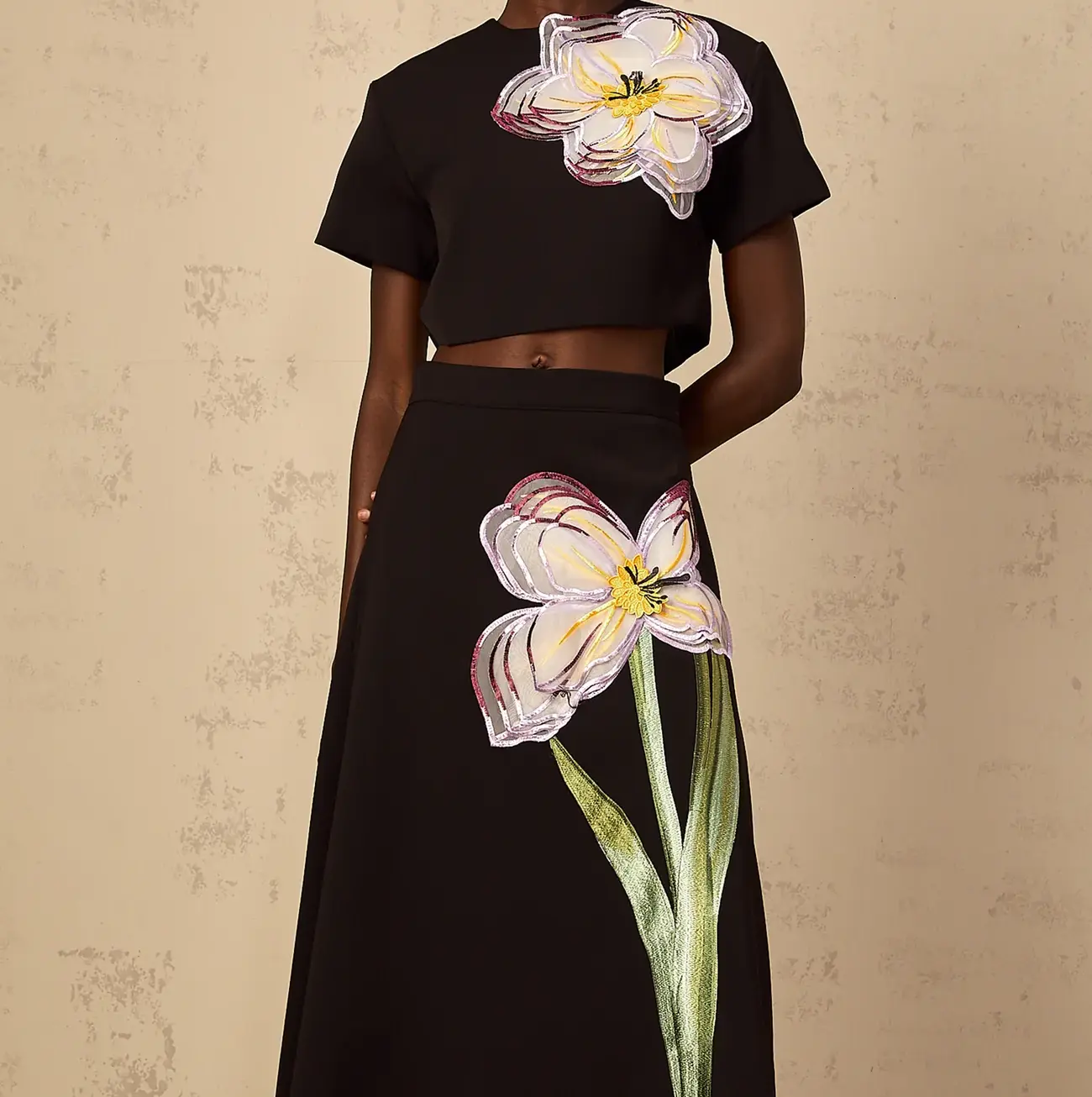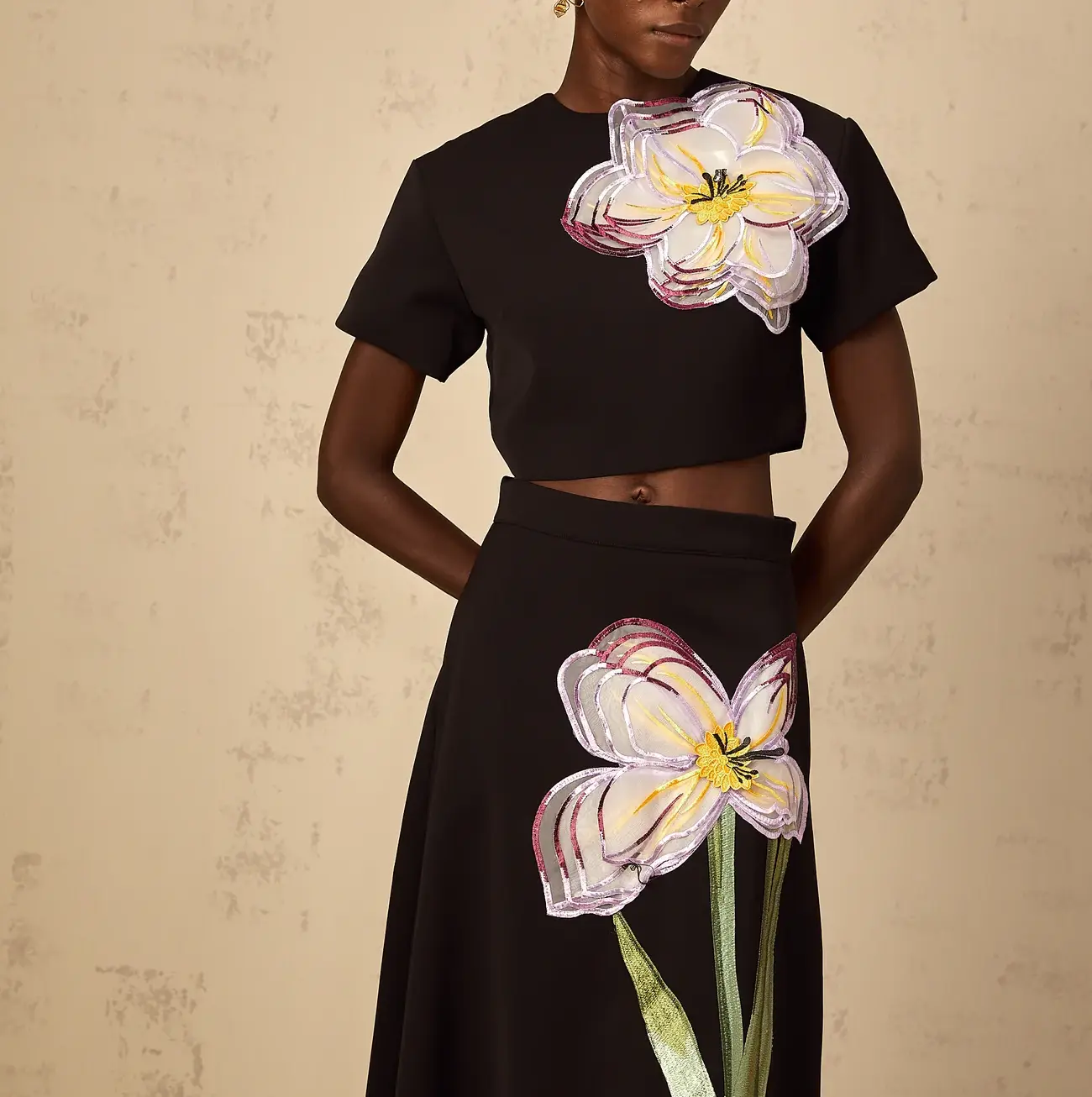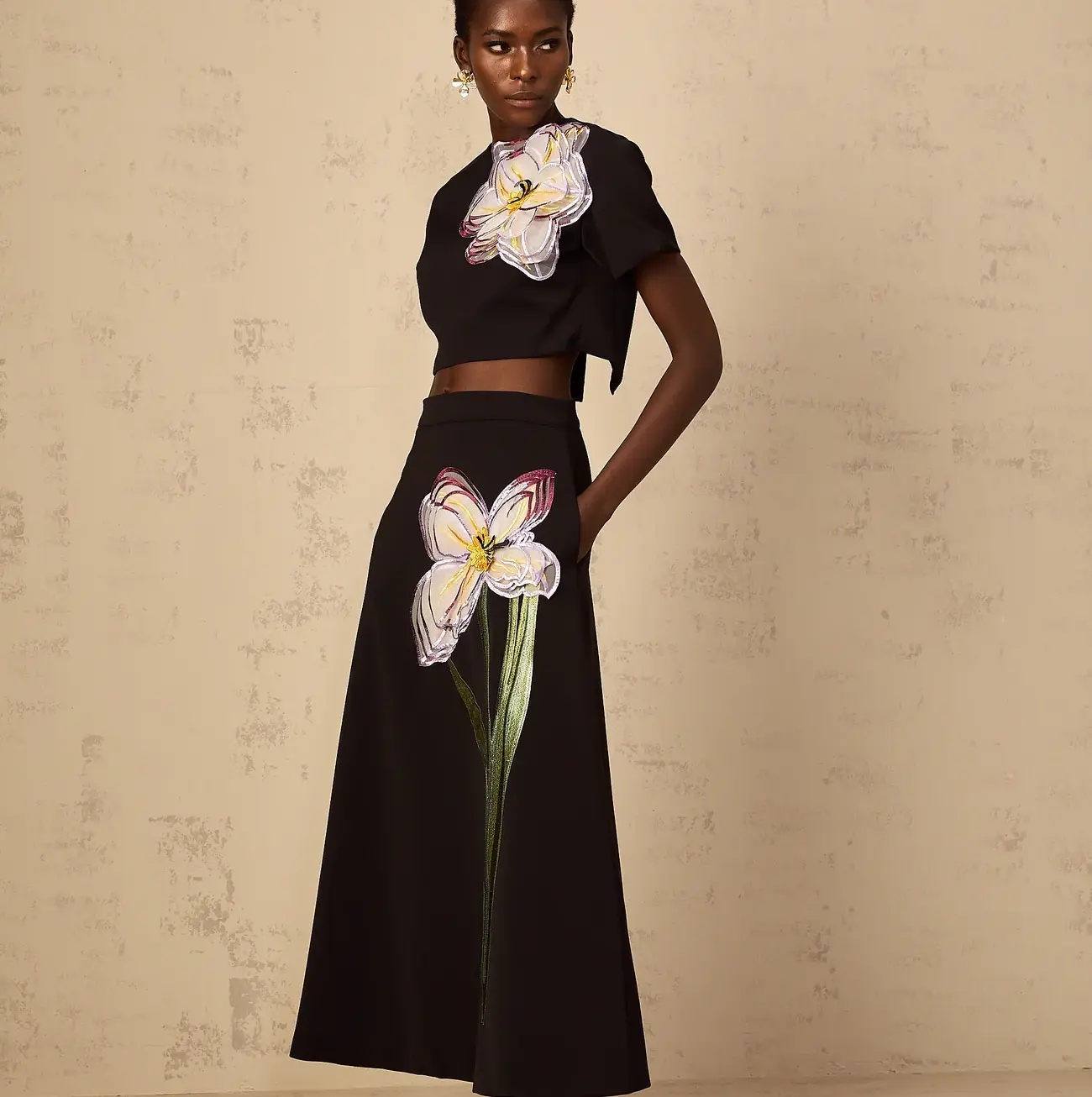 Conjunto Aurora bordado con lentejuelas y flores en tono negro