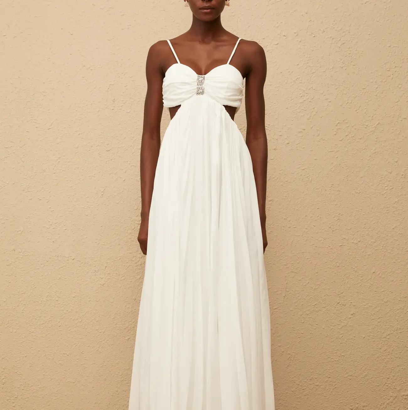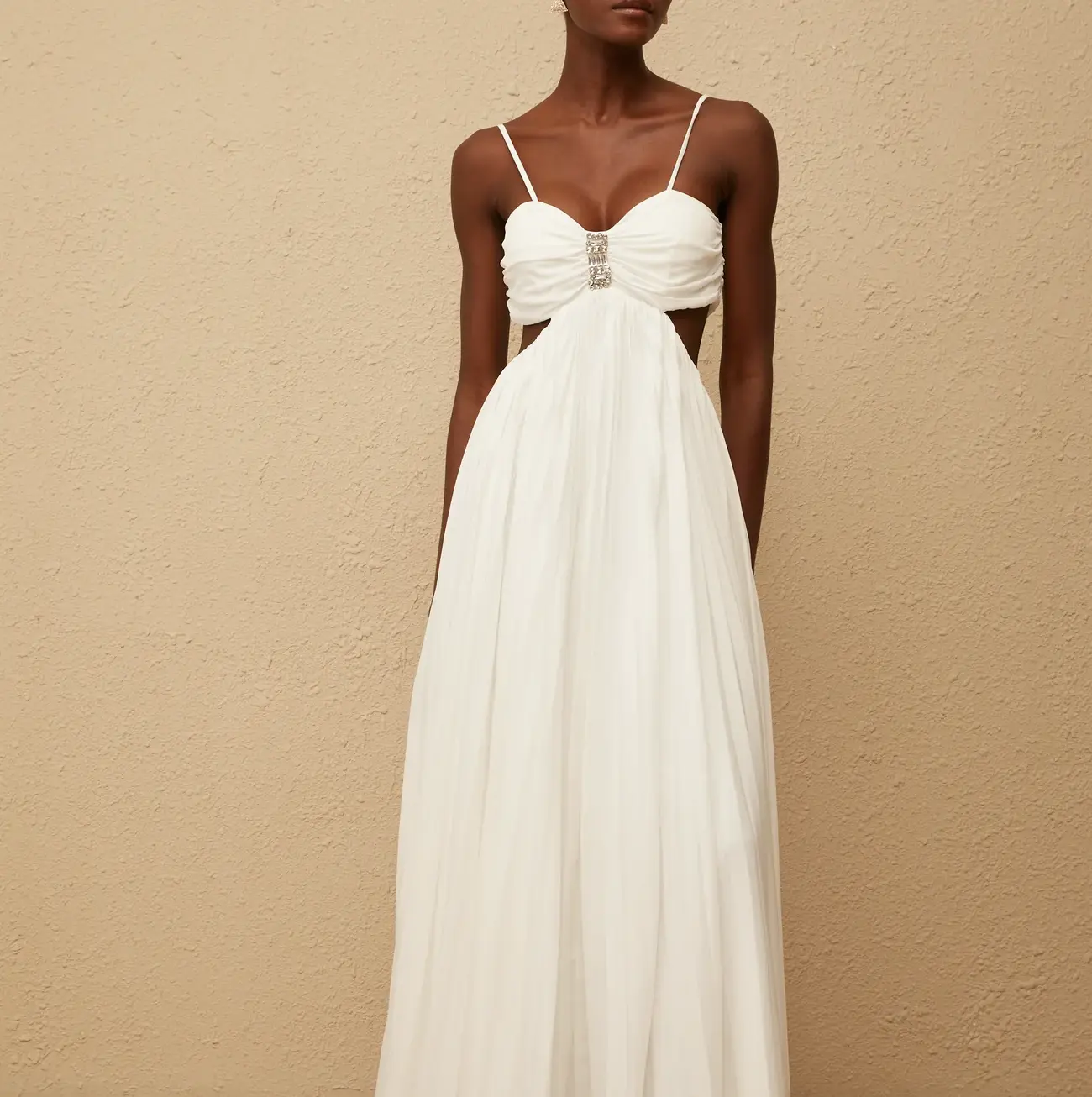 Elodie Vestido Largo con Aberturas y Plisado Color Blanco