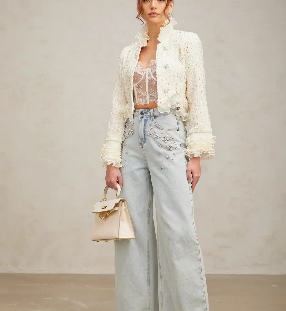 VESTIDO DE BRILLOS AZUL CON BLANCO