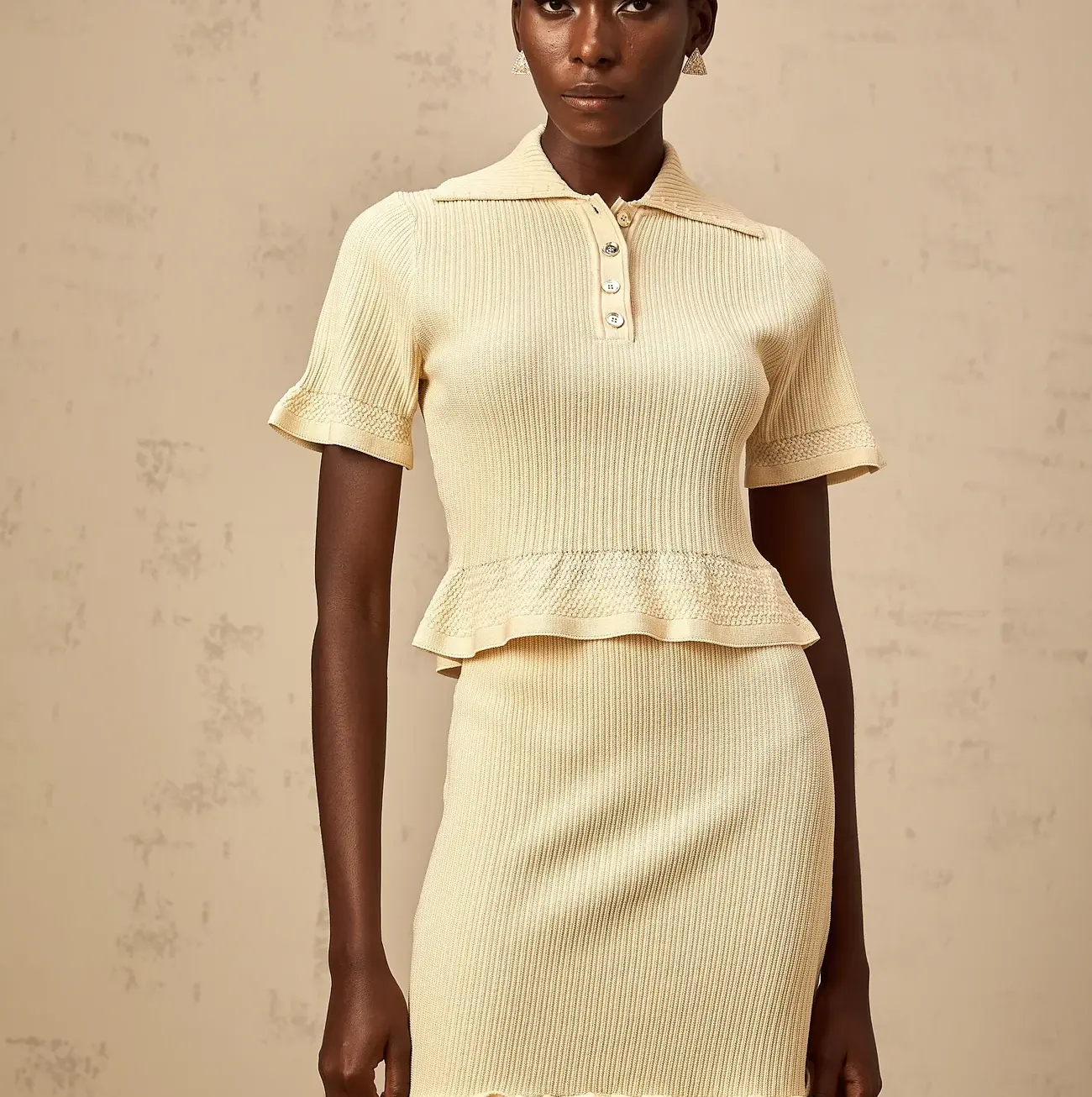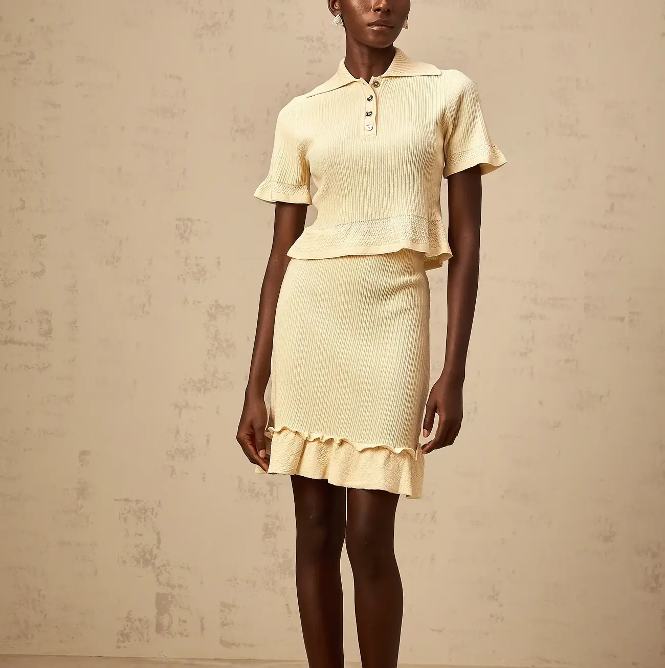 ILEANA – CONJUNTO AMARILLO DE TOP Y FALDA ACANALADOS CON VOLANTES