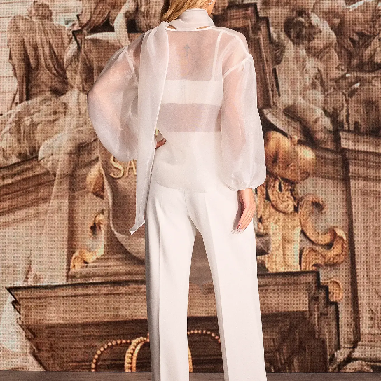 Isadora Set de Tres Piezas con Maxi Falda, Blusa de Manga Larga y Escote en V