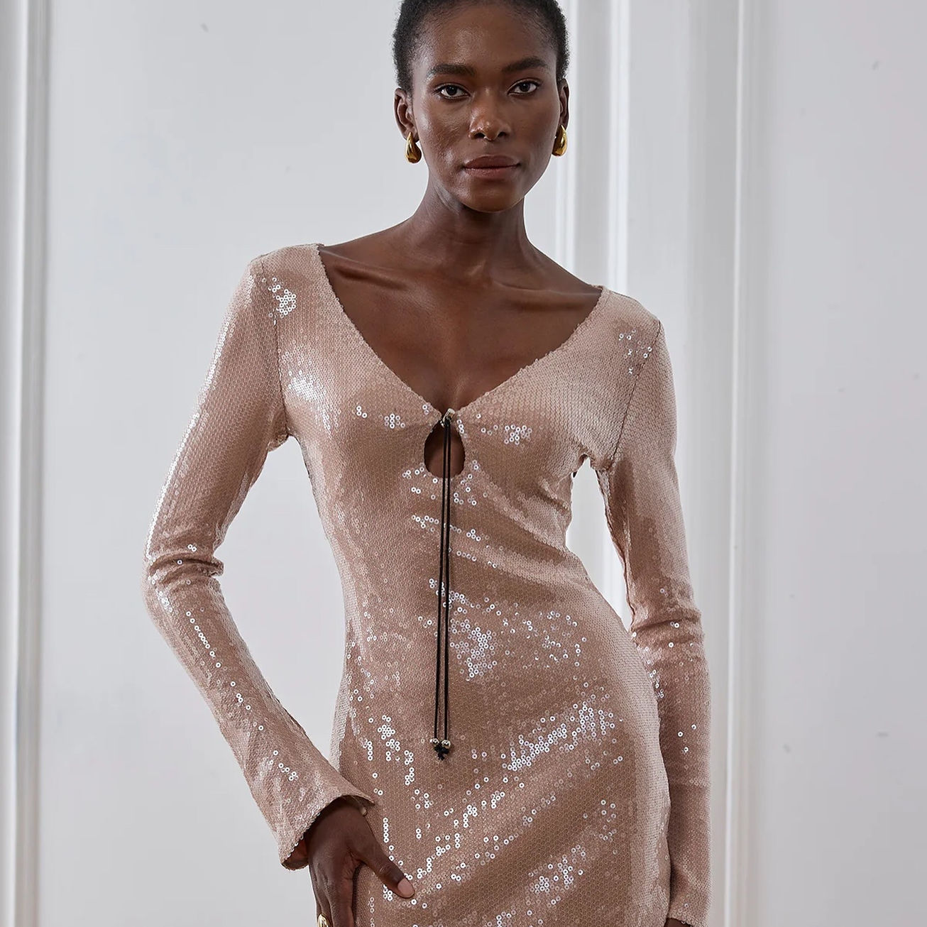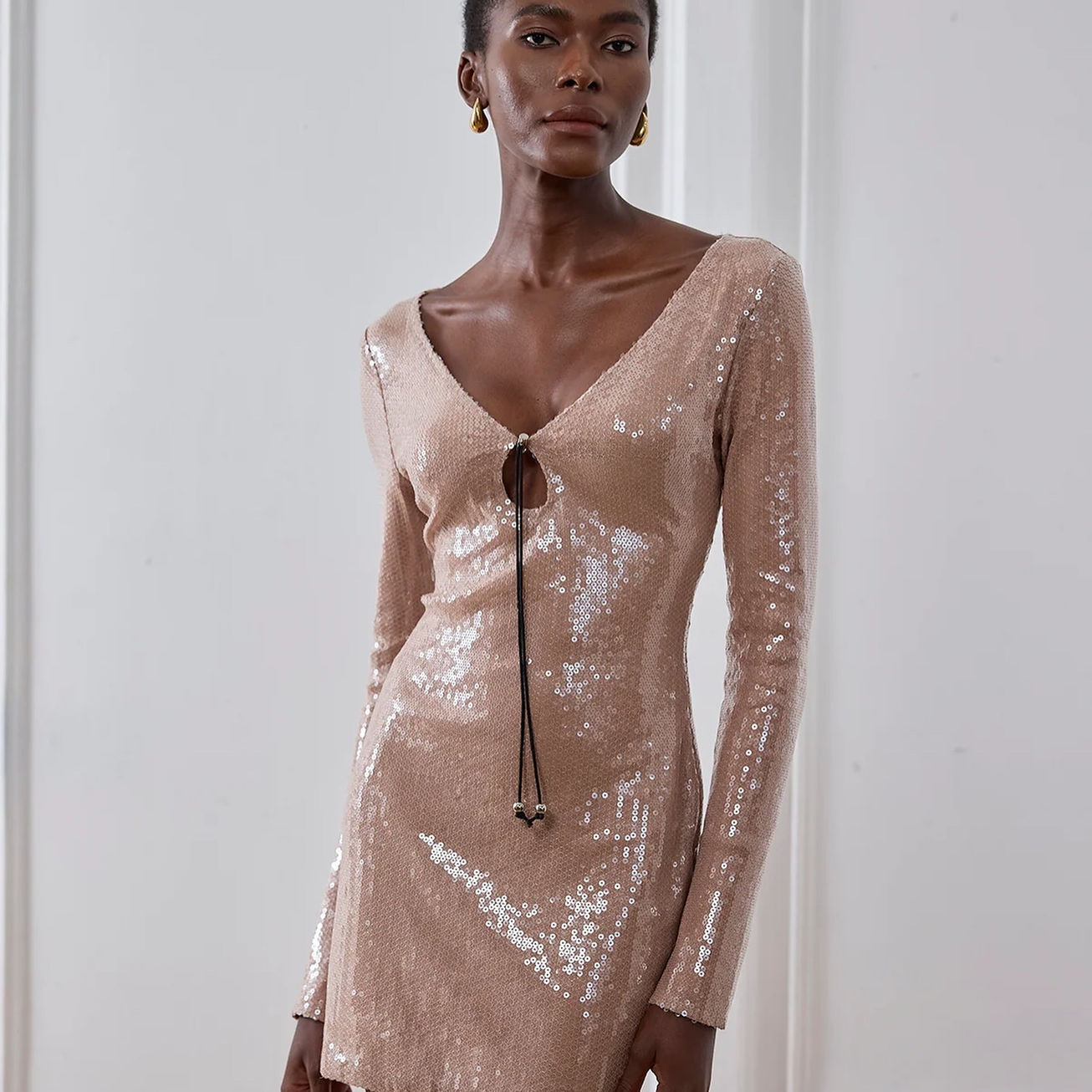 Introducing the stunning Josiane Mini Dress, the perfect choice for any fashion-forward woman. This mini dress is adorned with beautiful sequins, giving it a glamorous and eye-catching look. With its flattering silhouette and mini length, this dress is ideal for a night out or a special event. The Josiane Mini Dress is a must-have piece for any woman who loves to make a statement with her fashion choices. Add this dazzling dress to your wardrobe and prepare to turn heads wherever you go.