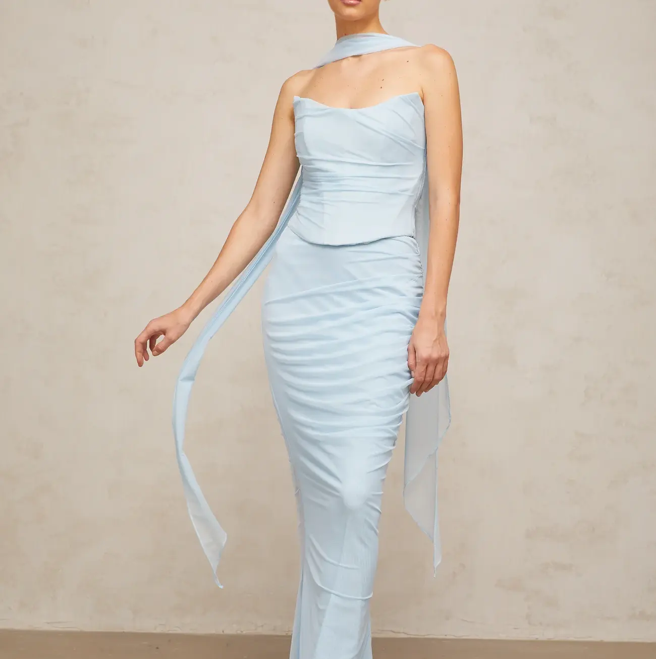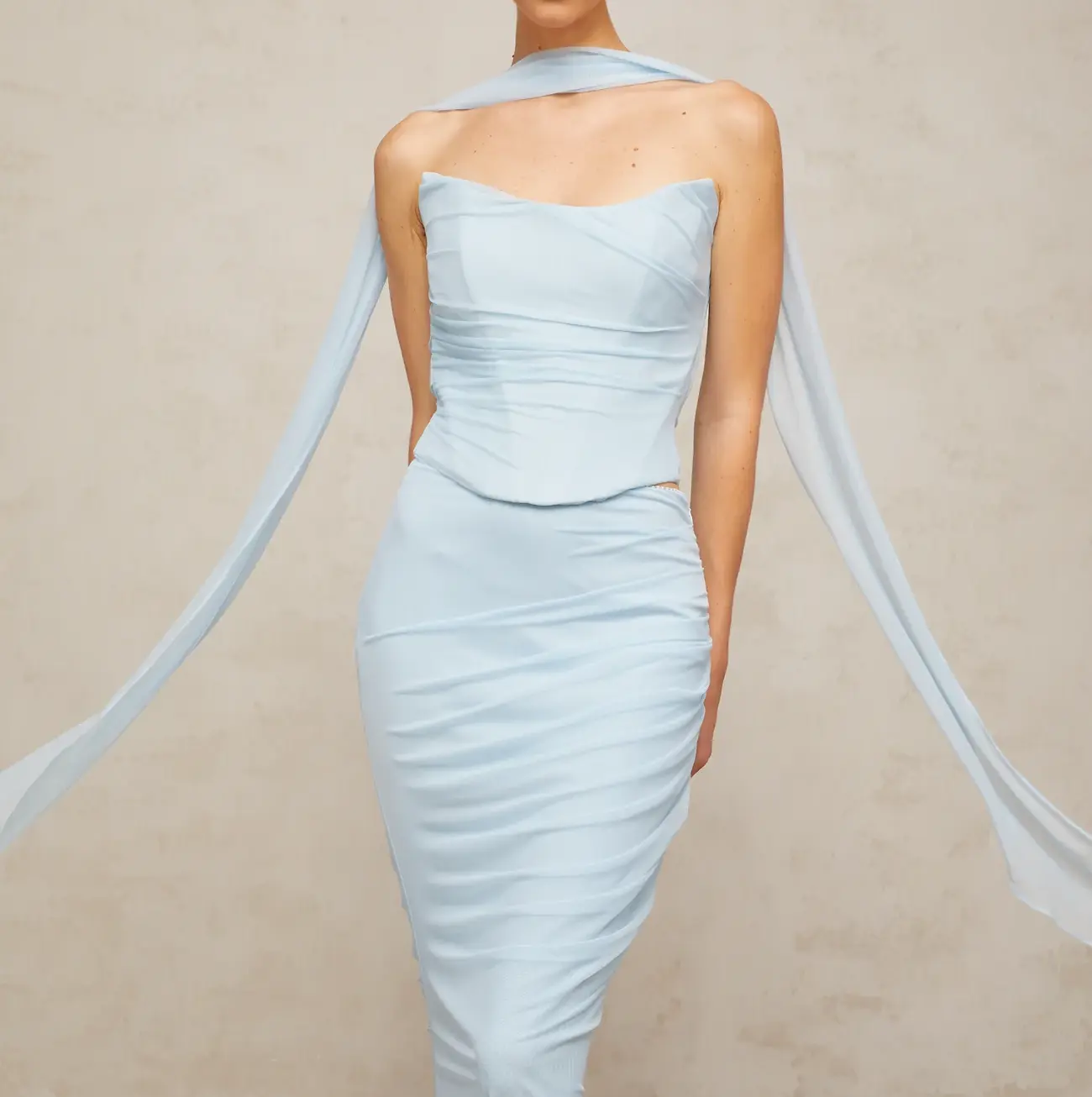 El Set es la combinación perfecta de elegancia y modernidad. Confeccionado en delicado tul azul con un diseño fruncido que realza la silueta, este conjunto incluye un top sofisticado y una falda a juego, creando un look armonioso y estilizado. Ideal para eventos especiales, cenas elegantes o cualquier ocasión donde el estilo y la sofisticación sean protagonistas.