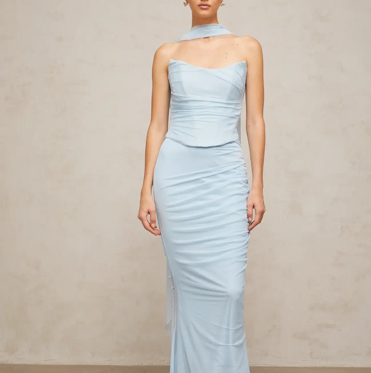 LEAH CONJUNTO AZUL DE TUL FRUNCIDO: TOP Y FALDA
