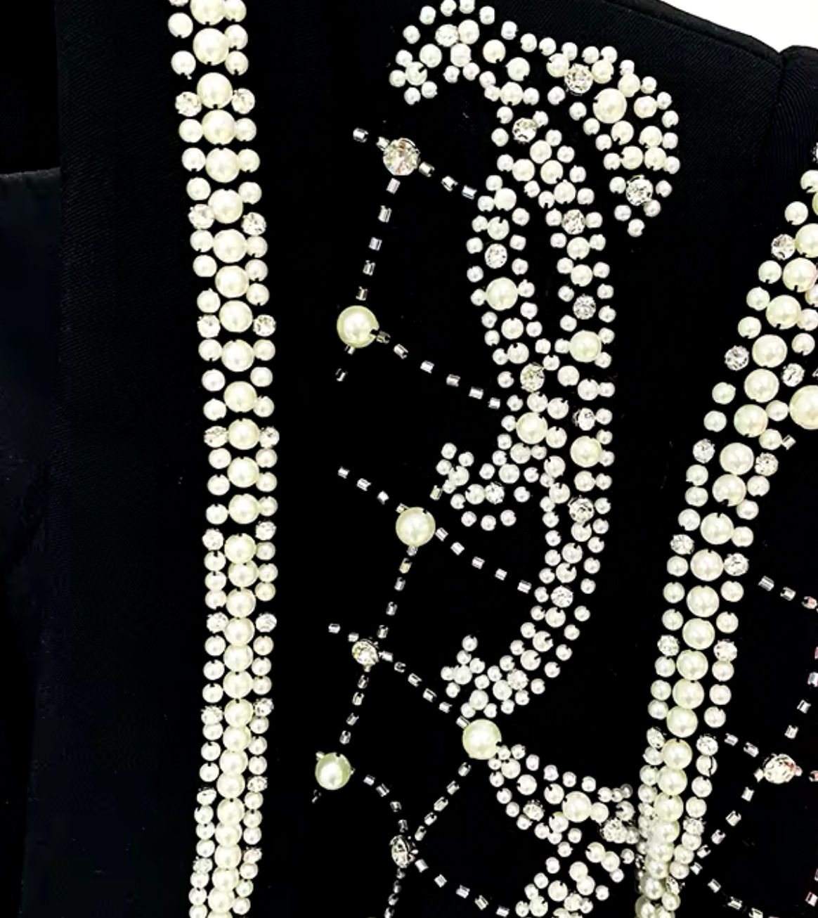VESTIDO DE BRILLOS AZUL CON BLANCO