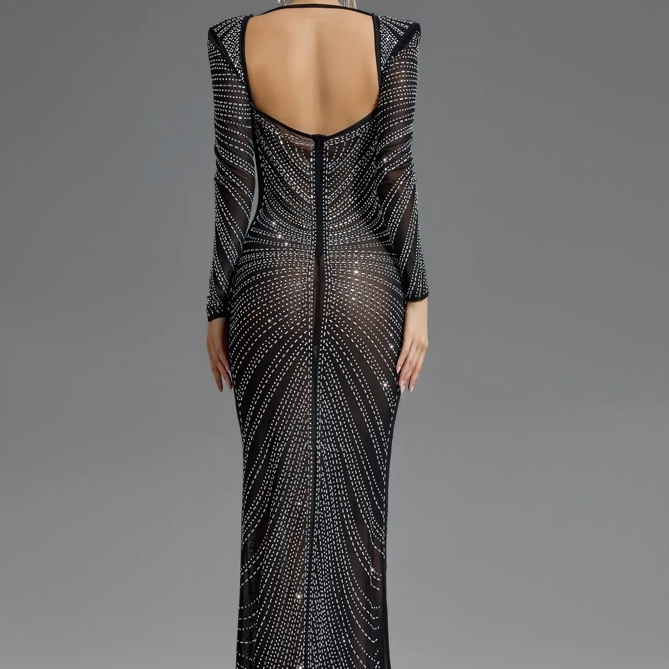 VESTIDO DE BRILLOS AZUL CON BLANCO
