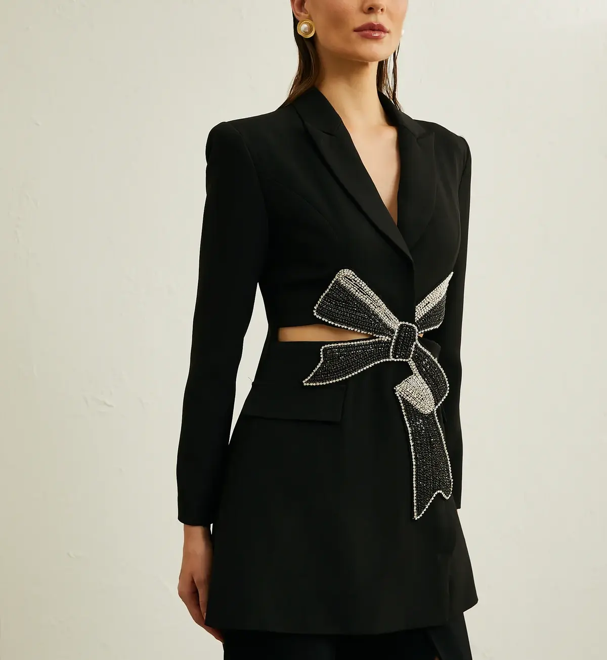 VESTIDO DE BRILLOS AZUL CON BLANCO