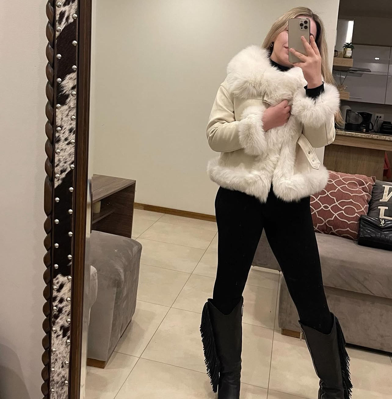 ABRIGO PIEL DE ZORRO COLOR BLANCO