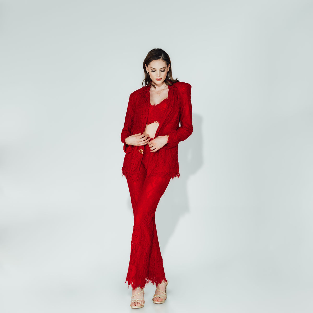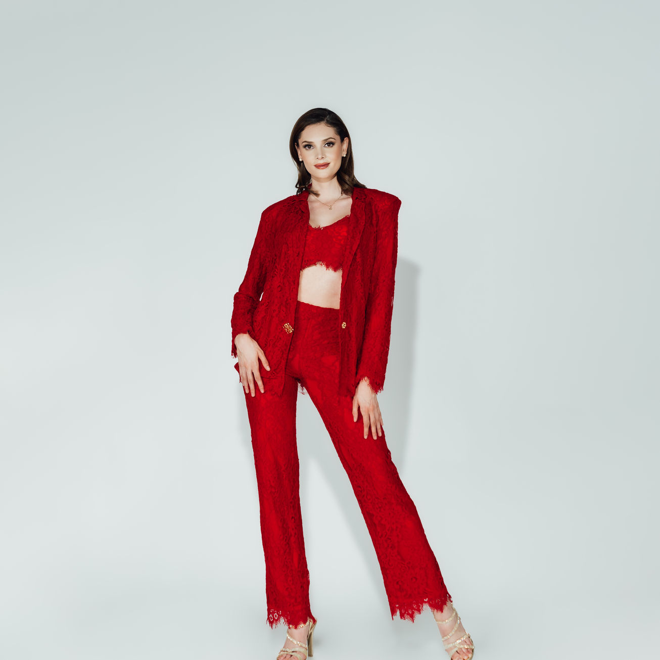 Set Negro Blusa Manga Larga con Encaje y Falda con Moño