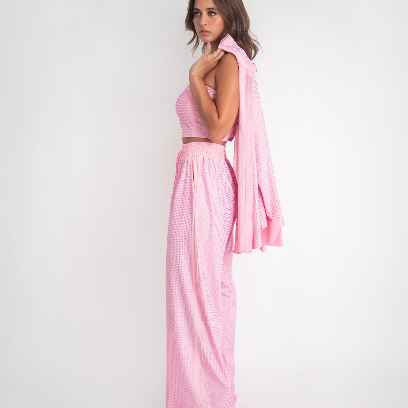 Set Eva con brillos tres piezas en color rosa