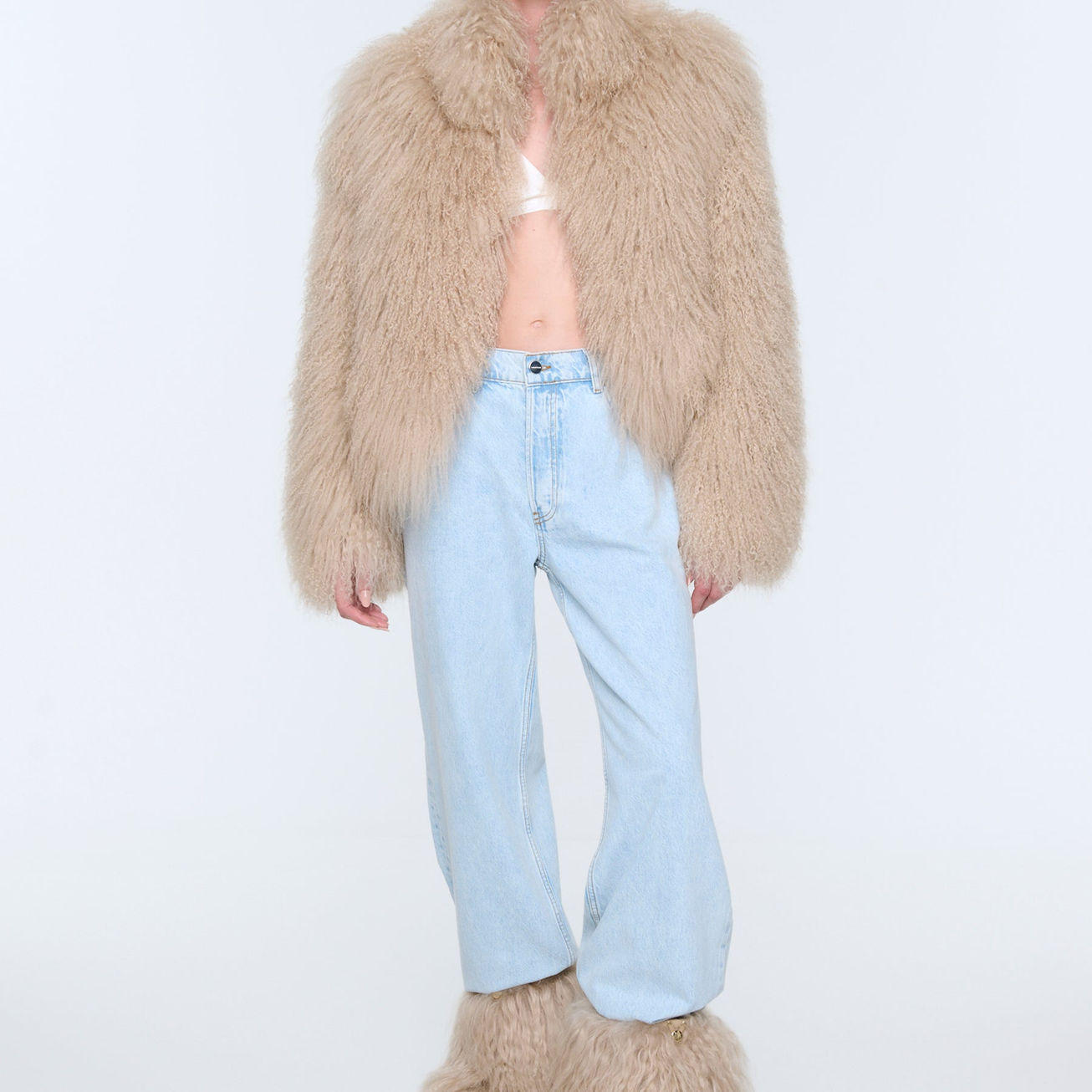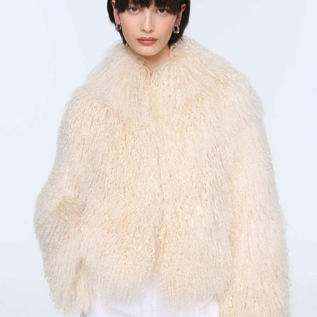 Cortado de la piel de oveja más suntuosa de Mongolia, este abrigo causa sensación dondequiera que vaya. El acabado natural rizado y los cierres discretamente ocultos hacen que esta pieza sea tan elegante como acogedora.