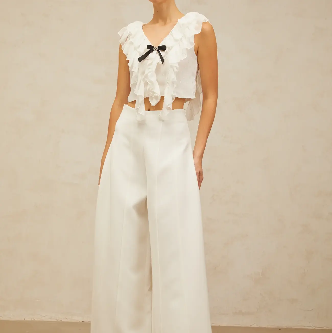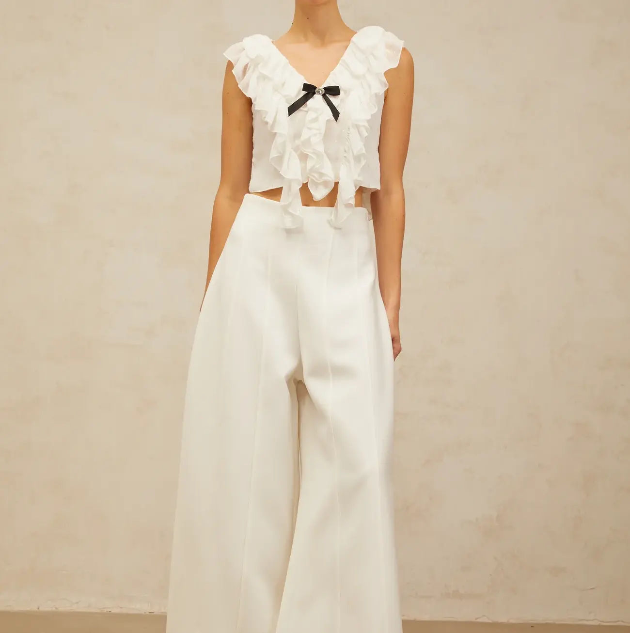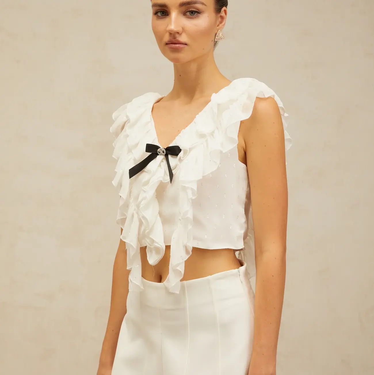Top Cristi Blanco de Gasa con Moño y Volantes