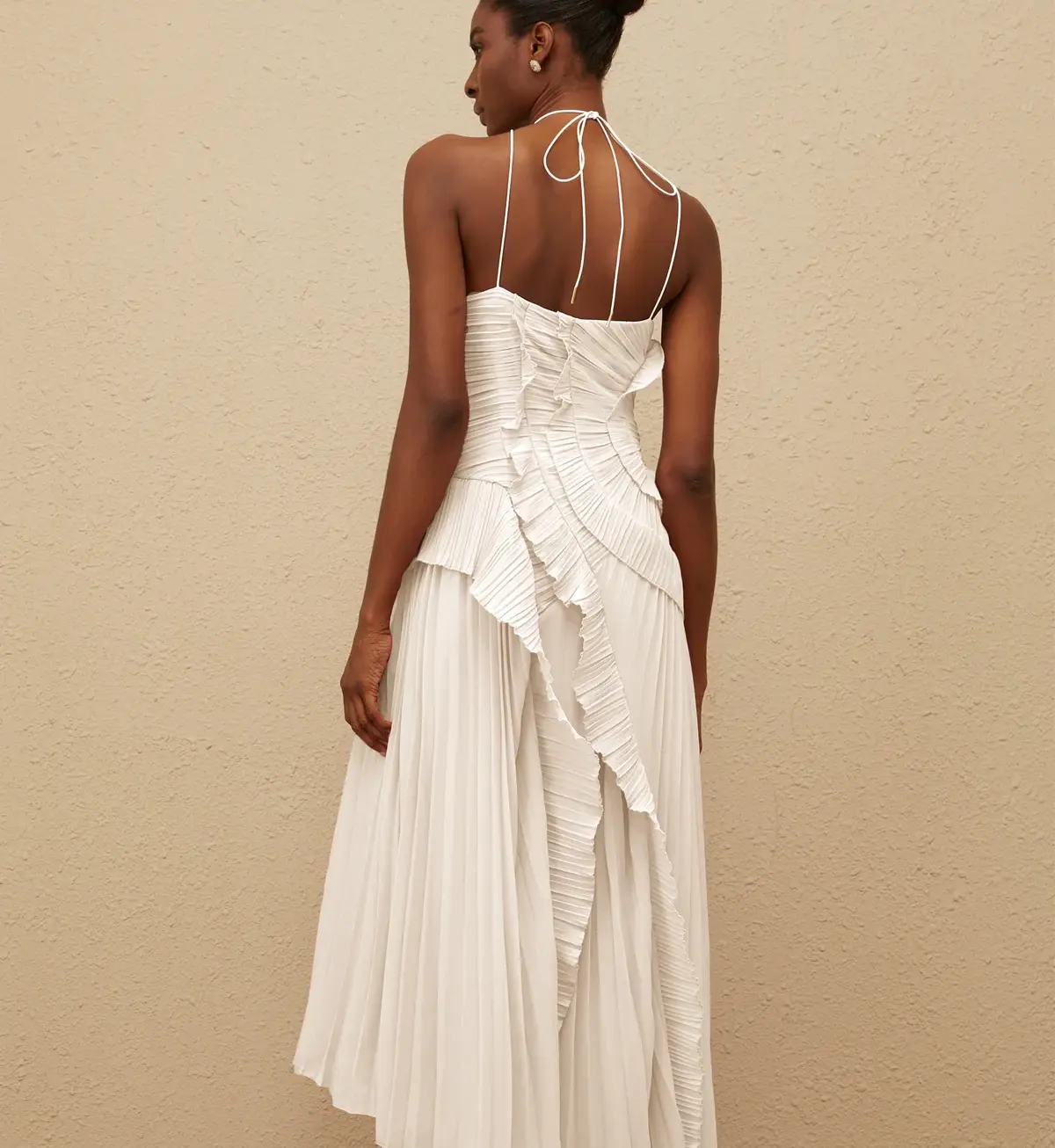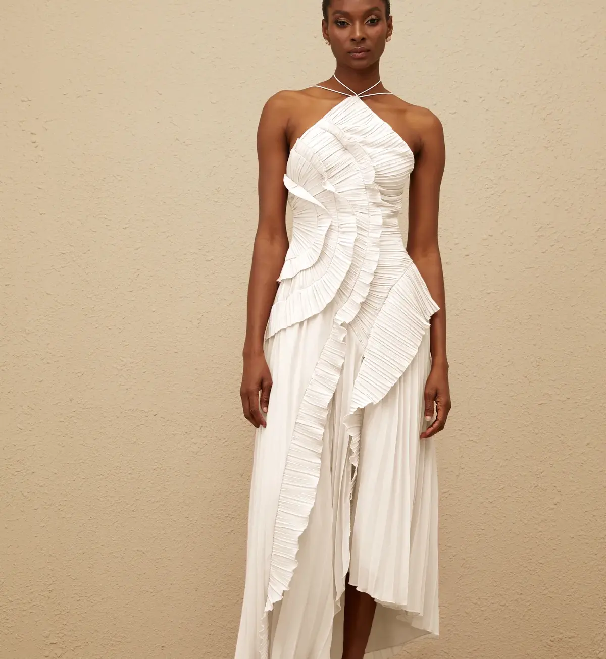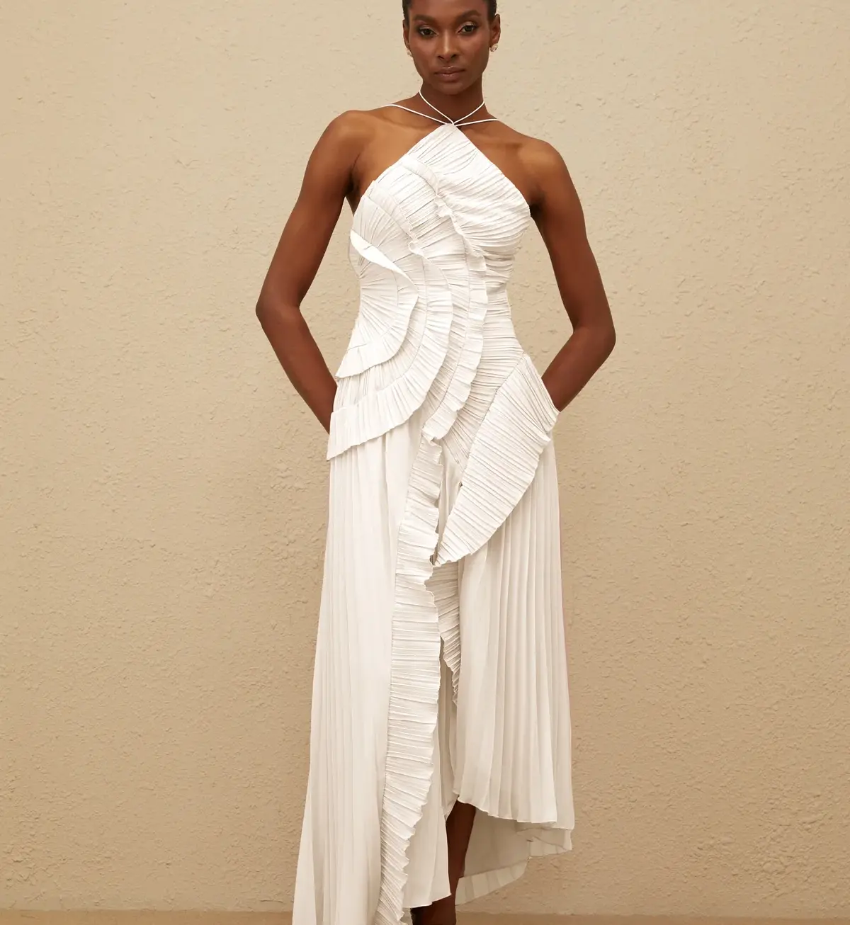 Vestido Alaine Blanco Midi con Volantes y Plisado