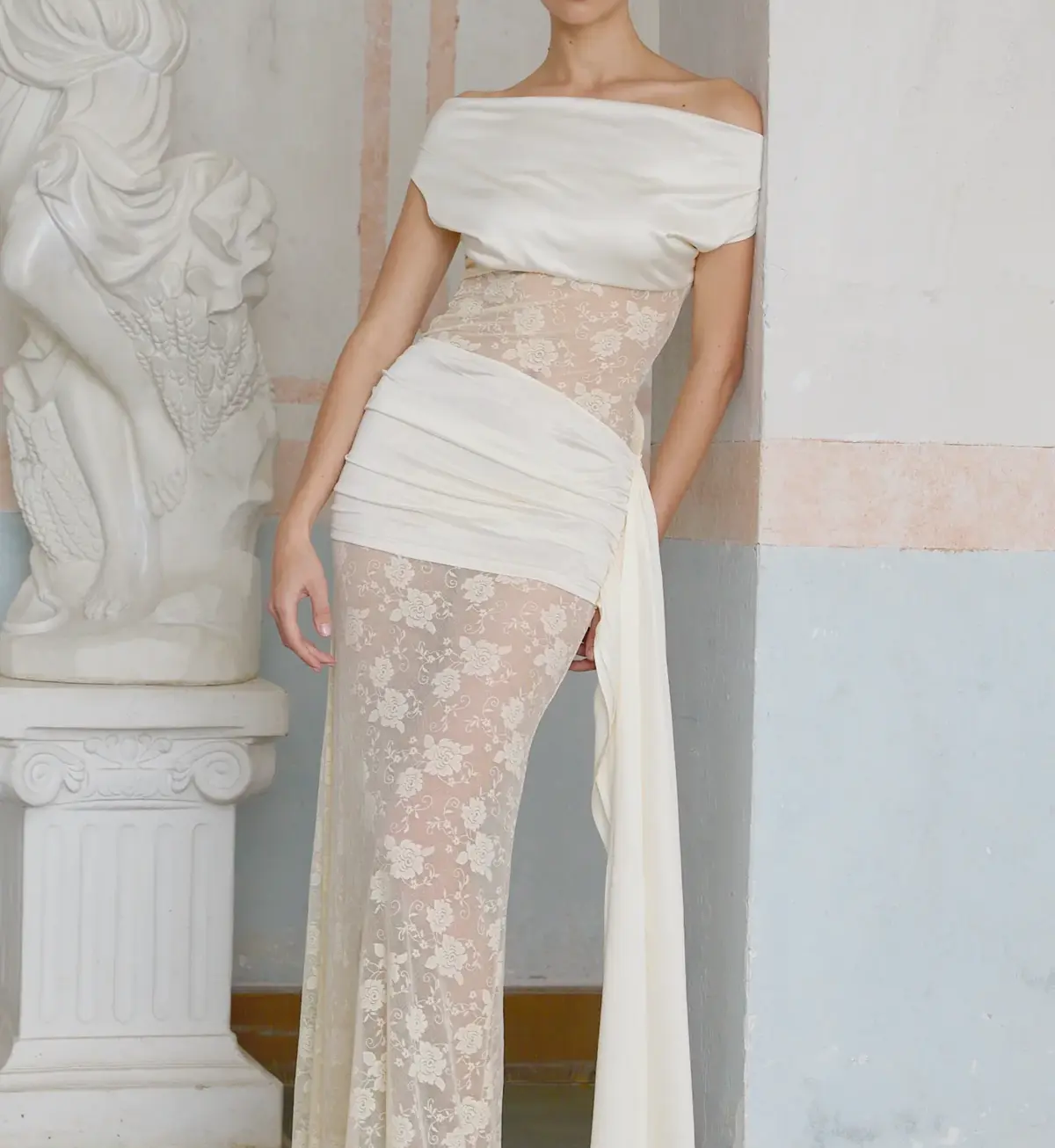 VESTIDO DE BRILLOS AZUL CON BLANCO
