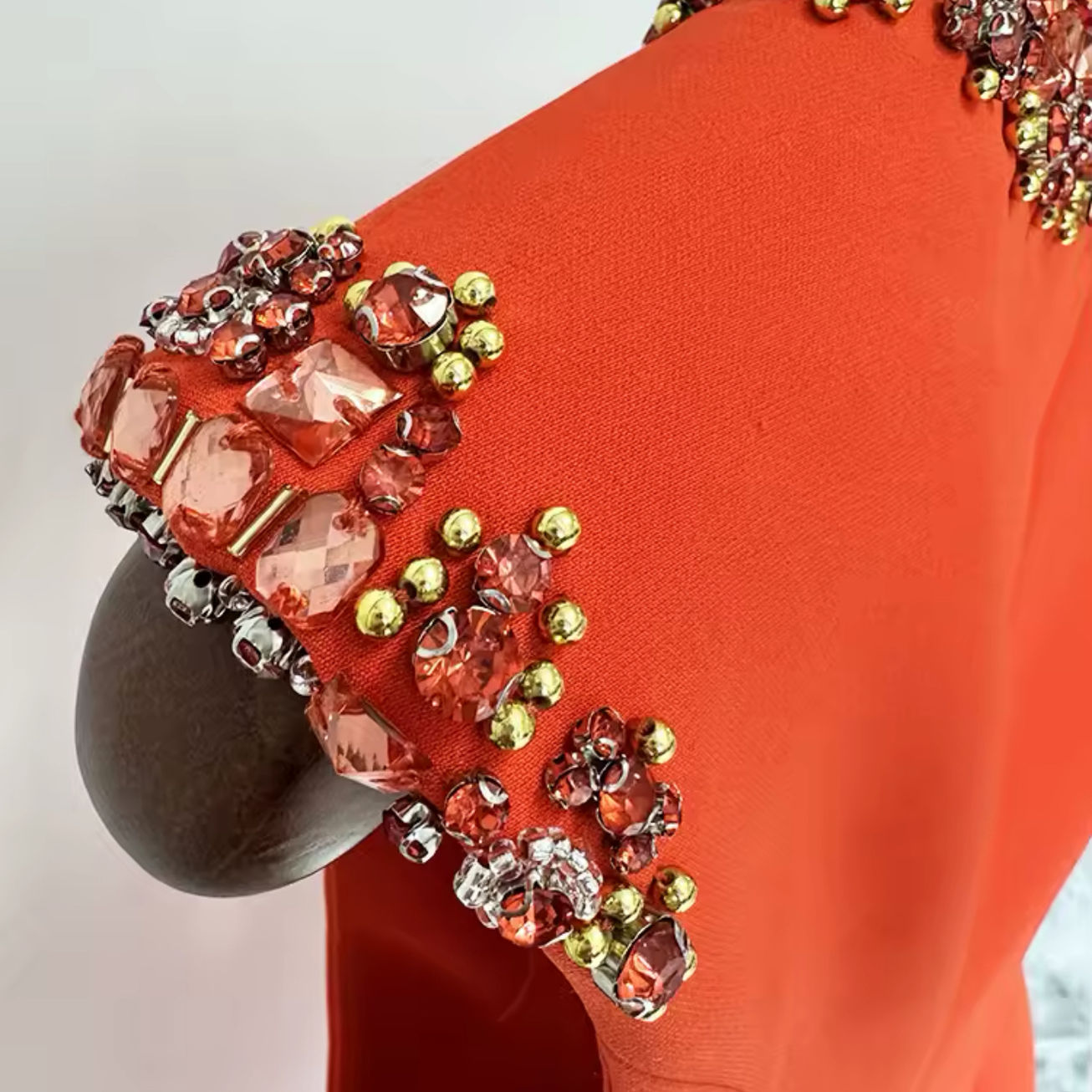VESTIDO DE BRILLOS AZUL CON BLANCO