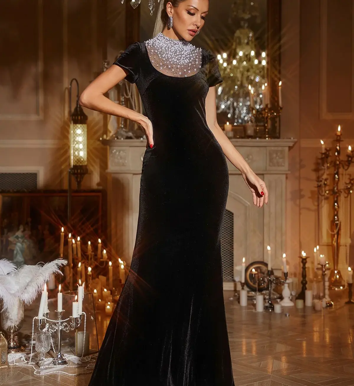 VESTIDO DE BRILLOS AZUL CON BLANCO